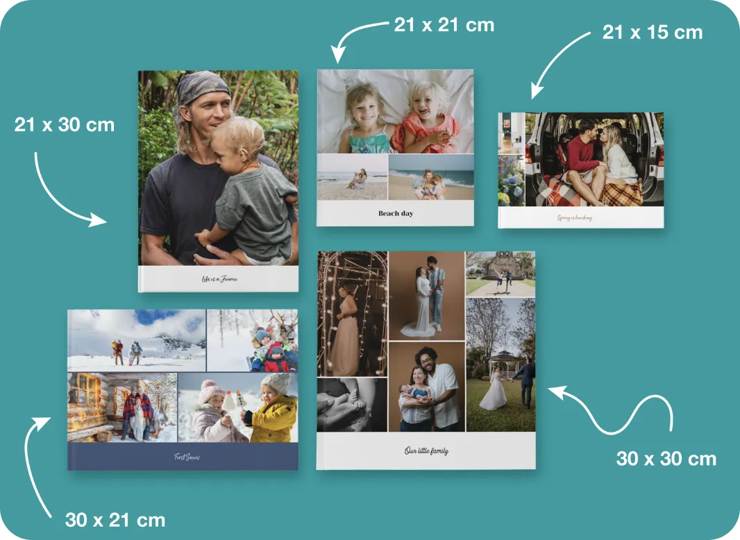 If you have mostly vertical shots of people and portraits, a Portrait book will display them best. And for all those square photos from your phone, our Square books are the perfect fit.